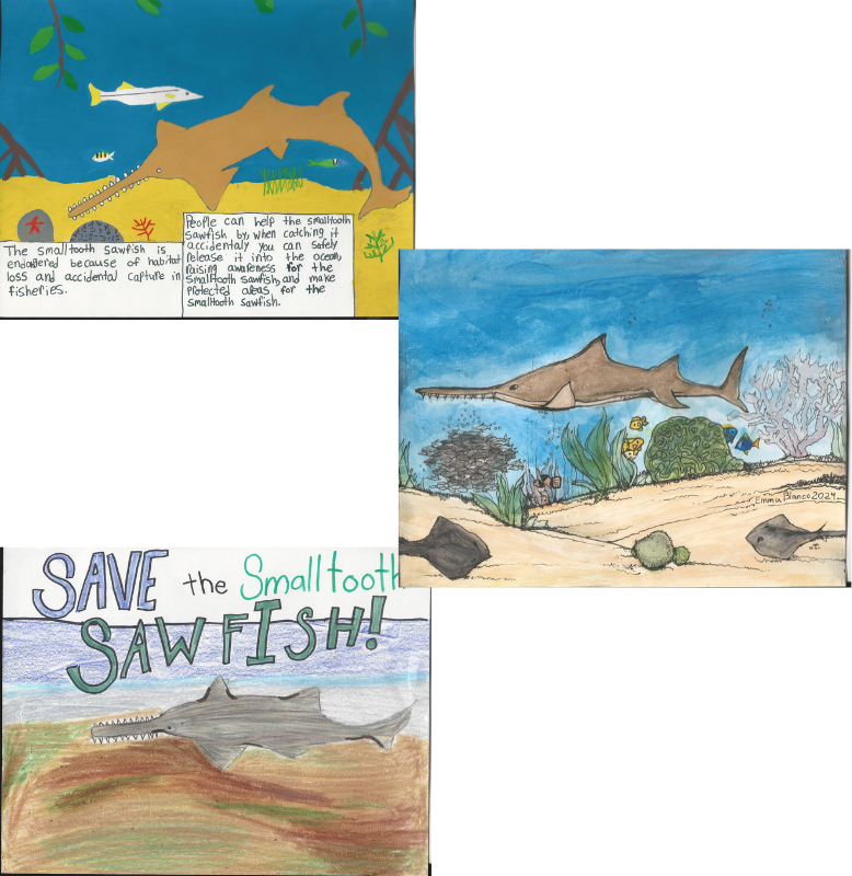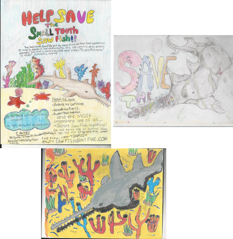 The 18th Annual Children’s Environmental Art Contest “Coloring the Earth” was sponsored by the Friends of the Cape Coral Library and the Cape Coral-Lee County Public Library. Below is the list of winners and their artwork. (The original drawings by the 21 winners are framed and on display in the alcove area of the Cape Coral Library art gallery through June 27.) The contest theme this year: “Let’s Save the Smalltooth Sawfish!”